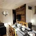 The 42 m² apartment is thoughtfully designed to accommodate up to five guests. Located on the first floor of a quiet building with an elevator, it features a cozy living room with a TV and access to a private balcony, an open-plan kitchen equipped with modern appliances, and a dining area perfect for shared meals. The master bedroom offers a luxurious double bed, a TV, and a spacious dressing room, while the separate sleeping alcove provides a double bed and a single loft bed, ideal for children. Additional amenities include a walk-in shower, heated towel rail, Wi-Fi, and a ski locker.
