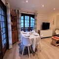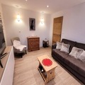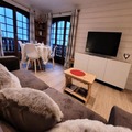 Bathed in golden sunlight and surrounded by the serene beauty of the French Alps, this southwest-facing apartment offers a tranquil retreat just moments from the village center. With two spacious balconies totaling 17 m², guests can savor panoramic views and breathe in the crisp mountain air, whether enjoying a morning coffee or unwinding after a day of alpine adventures. The residence is nestled in a quiet building with an elevator, ensuring both comfort and convenience for your stay. \n\nInside, the 42 m² apartment is thoughtfully designed to accommodate up to four guests. The bright living room features a cozy sofa bed and opens onto the balcony, creating a seamless indoor-outdoor connection. The fully equipped kitchen, complete with a Nespresso coffee maker and modern appliances, invites you to prepare hearty meals to share in the adjoining dining area. The bedroom, with its plush double bed and access to a second west-facing balcony, promises restful nights and serene mornings. A sleek bathroom with a washing machine and separate toilet completes the layout, making this space ideal for couples or small families seeking a relaxing getaway. \n\nSituated just 500 meters from the nearest ski slopes and shops, and 650 meters from the renowned ESF (French Ski School), the apartment is perfectly positioned for winter sports enthusiasts. In summer, the landscaped garden and surrounding trails transform the area into a haven for hikers and nature lovers. A shuttle stop only 50 meters away ensures effortless access to local attractions and amenities, while the covered parking and ski locker add extra convenience. \n\nWhether you’re here to carve through pristine snow or explore alpine meadows, this charming residence combines modern comfort with an unbeatable location, promising unforgettable memories in every season.
