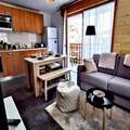 Inside, the 35 m² space has been thoughtfully renovated to blend modern comfort with alpine charm. The apartment features a bright living area with French doors leading to the terrace, a fully equipped kitchenette for preparing hearty meals, and a dining space perfect for sharing stories of the day’s adventures. The double bedroom, complete with storage and its own balcony access, offers a restful haven, while the sleeping alcove with bunk beds is a fun and practical solution for families. A spacious bathroom with a heated towel rail adds a touch of luxury to your stay.