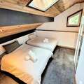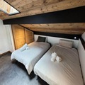 Inside, the apartment is thoughtfully designed to combine comfort and practicality. The spacious living room features a fully equipped kitchen, a cozy dining area, and a TV lounge that opens onto the balcony. The two en-suite bedrooms offer privacy and relaxation, with one featuring two 120cm beds and the other a double bed with ample storage. Modern amenities such as a dishwasher, washing machine, and a selection of kitchen appliances, including a raclette and fondue set, ensure a hassle-free stay. While there is no WiFi, a rental box is available for those who need to stay connected.