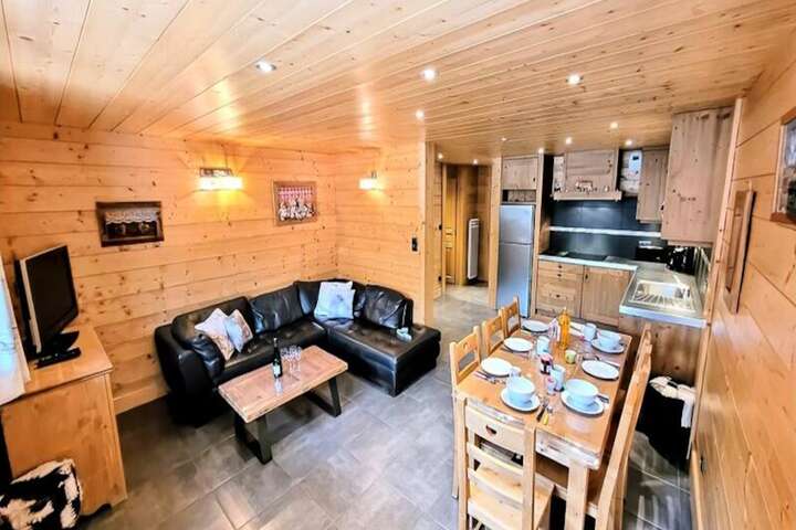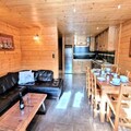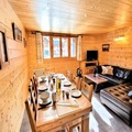 Spanning 80 m², the apartment comfortably accommodates up to seven guests, making it perfect for families or groups of friends. The thoughtfully designed layout includes two cozy bedrooms, a sleeping alcove with bunk beds, and a spacious living room that invites you to relax after a day of outdoor adventures. The fully equipped kitchen opens onto the living area, allowing you to prepare and enjoy meals together while taking in the views of the village and slopes. Modern amenities such as Wi-Fi, a washer and dryer, and a raclette grill ensure a seamless and enjoyable stay.
