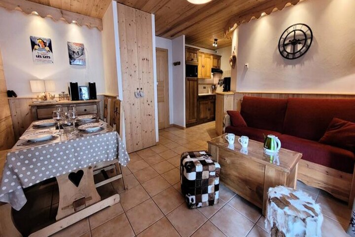 In the heart of a picturesque mountain village, this charming 3-room apartment invites you to experience the perfect alpine escape. Bathed in natural light thanks to its south-eastern exposure, this cozy retreat is a haven for those seeking both adventure and relaxation. With pedestrian streets surrounding the residence and the lively shopping street just steps away, you’ll find yourself immersed in the vibrant atmosphere of the French Alps. Whether it’s the crisp winter air or the refreshing summer breeze, this location offers a delightful blend of tranquility and convenience. \n\nThe apartment spans 45.80 m² and is thoughtfully designed to accommodate up to four guests. Featuring two comfortable bedrooms, a warm living area with a fully equipped kitchen, and a balcony that invites you to soak in the mountain views, every detail has been crafted for your comfort. Modern amenities such as Wi-Fi, a flat-screen TV, a raclette grill, and a Nespresso coffee machine ensure a seamless stay. The private covered parking for two cars and a ski locker add to the practicality, making it an ideal choice for families or small groups. \n\nSituated just 60 meters from the nearest ski slopes and shuttle, and 100 meters from the French Ski School (ESF), this residence is a dream for winter sports enthusiasts. In summer, the surrounding trails and alpine landscapes beckon hikers and nature lovers alike. With shops, restaurants, and essential services like a doctor’s office within a short stroll, everything you need is at your fingertips. \n\nWhether you’re here to carve through fresh powder, explore scenic hiking trails, or simply unwind in the serene mountain setting, this apartment offers the perfect base for unforgettable memories. Let the charm of the French Alps captivate you in every season.