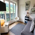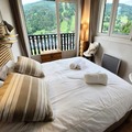 The 61 m² apartment is bathed in natural light and thoughtfully designed for comfort and style. With two en-suite bedrooms, a spacious living area, and a fully equipped kitchen, it’s perfect for families or groups of up to six. The southwest-facing 23 m² balcony is the ideal spot to unwind after a day of skiing or hiking, offering breathtaking views of the slopes and the village below. Modern amenities like fiber optic Wi-Fi, a washer-dryer, and a raclette machine ensure a hassle-free stay, while the cozy TV area invites you to relax after an active day.