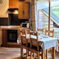 The 47 m² apartment is thoughtfully designed to accommodate up to five guests. The main living area features a fully equipped kitchen that seamlessly flows into the lounge, where large bay windows open onto the balcony, offering uninterrupted views of the slopes. The sleeping arrangements include a charming attic double bedroom with an additional single bed and a cozy bunk bedroom, ideal for children. Modern amenities such as Wi-Fi, a flat-screen TV, and a well-appointed bathroom ensure a comfortable stay, while the warm wooden accents create a welcoming alpine ambiance.