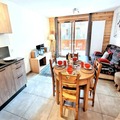 Step inside to discover a thoughtfully designed space that combines comfort and functionality. The bright living room, with its open-plan kitchen, creates a welcoming atmosphere for relaxing evenings after a day on the slopes. The en-suite master bedroom offers a private sanctuary with its own shower room and TV, while the cozy cabin with bunk beds is perfect for children or additional guests. Modern amenities such as Wi-Fi, two TVs, and a fully equipped kitchen—including a Nespresso coffee maker and raclette grill—ensure a seamless stay. The private balcony-terrace adds a touch of outdoor charm, ideal for unwinding with a glass of wine as the sun sets.