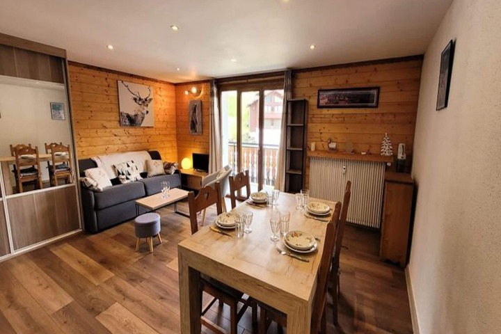 In the heart of the charming Old Village of Les Gets, this delightful apartment offers a perfect blend of alpine tradition and modern comfort. Just steps from local shops and a short walk to the Mont Chery ski slopes, this residence places you in an ideal location for exploring the beauty of the French Alps. The Chavannes ski area and the bustling resort center are only five minutes away, making it a convenient base for both adventure and relaxation. \n\nSituated on the second floor of a quaint, typical alpine residence, this recently renovated apartment exudes warmth and practicality. The bright living space is complemented by a large, fully equipped modern kitchen, perfect for preparing hearty meals after a day on the slopes. The east-facing balcony invites you to enjoy serene mornings with gentle sunshine and picturesque views. Designed to accommodate up to four guests, the apartment features a cozy entrance hall with a cabin bunk bed, a comfortable living room with a sofa bed, and a functional bathroom with a towel dryer for added convenience.\n\nWith ski slopes just 200 meters away and the French Ski School within easy reach, this location is a haven for winter sports enthusiasts. In summer, the village transforms into a vibrant hub for hiking, mountain biking, and other outdoor activities. The nearby shuttle stop ensures easy access to explore the surrounding areas, while the proximity to shops and restaurants means you’ll have everything you need at your fingertips.\n\nWhether you’re seeking a peaceful retreat or an active holiday, this cozy apartment in Les Gets promises an unforgettable alpine experience. With its charming ambiance, excellent location, and thoughtful amenities, it’s the perfect choice for couples, small families, or friends looking to immerse themselves in the magic of the mountains.