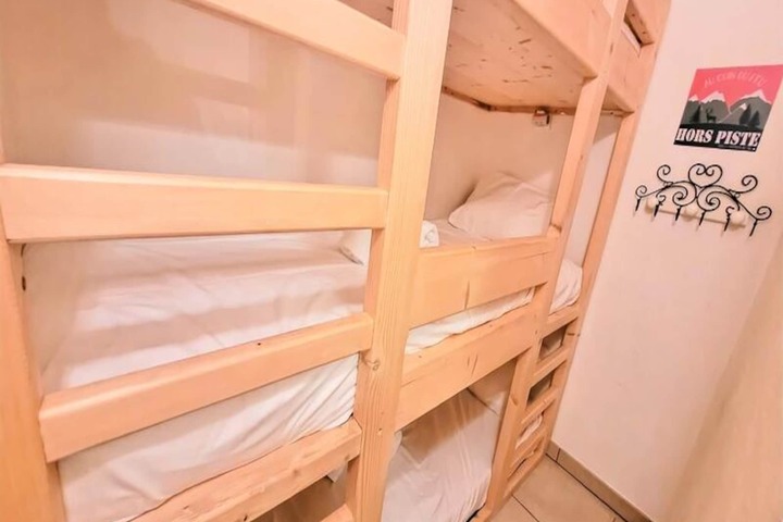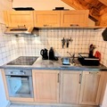Thoughtfully designed to accommodate up to four guests, the apartment features a warm and inviting living space with a sitting area and a fully equipped kitchen. The double bedroom offers a restful retreat with ample storage, while the sleeping alcove with a bunk bed is perfect for children or additional guests. The bathroom, complete with a bathtub and towel dryer, ensures comfort after a day of exploring. Modern amenities such as Wi-Fi, a flat-screen TV, and a washer-dryer add convenience, while the provided raclette and fondue sets invite you to savor local culinary traditions.