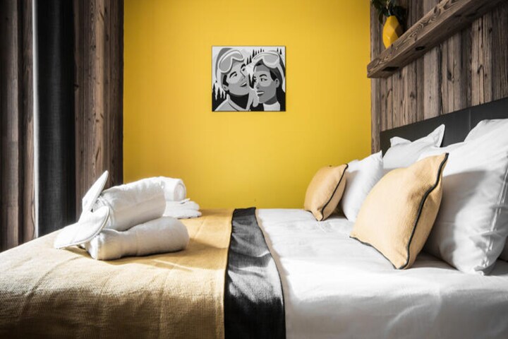 This luxury chalet offers an exceptional 500m² space spread across four levels, providing accommodations for up to 14 guests. The chalet features 7 spacious bedrooms, each with an en-suite bathroom, television, and dressing room. The 40m² master suite includes a king-size bed, an adjoining bathroom with an Italian shower and phototherapy bathtub, and a television. The first floor boasts a large living area, including a fully equipped kitchen, dining room, and a cozy living room with a fireplace. A panoramic balcony provides stunning views of the Perrières ski slopes.