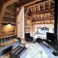 The chalet features a fully equipped kitchen designed for large groups, with everything needed for preparing meals. Guests will find modern appliances, including an oven, stove, refrigerator, and dishwasher. The spacious dining area, adjacent to the living room, offers ample seating for large gatherings, while the lounge area provides a cozy space for unwinding. Other amenities include a ski room for storing equipment and two garage parking spaces with electric vehicle charging capabilities. With its combination of modern conveniences and traditional Alpine charm, this chalet is an ideal retreat for those seeking both relaxation and adventure in the French Alps.
