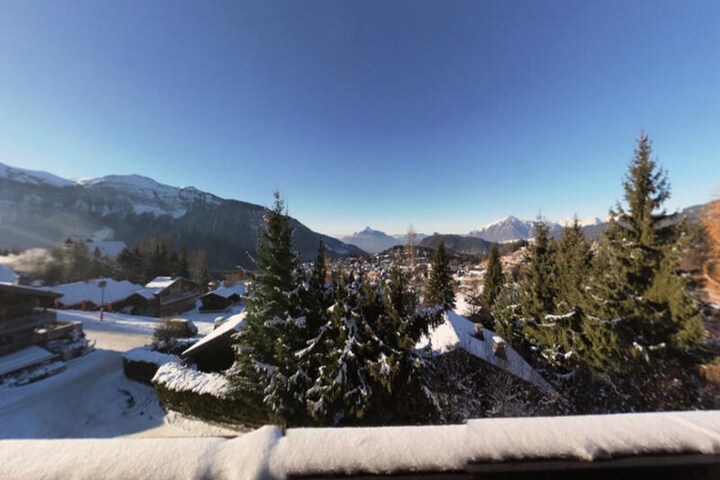 The apartment includes a well-equipped kitchenette with a mini oven, two electric hotplates, a fridge, microwave, and dishwasher. The bathroom features a shower, while the WC is separate for added convenience. A west-facing balcony offers stunning views of the Aravis mountain range, making it a perfect spot to relax after a day of skiing.