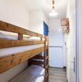 The apartment is thoughtfully designed to maximize comfort and functionality within its 26 m² space. It features a cozy living room with a two-seater sofa, a dining area with seating for five, and a well-equipped kitchen open to the living space. The sleeping arrangements include an enclosed alcove with a double bed and another alcove with bunk beds, making it ideal for families or small groups. The bathroom includes a bathtub for unwinding after a day of exploration, and a separate toilet adds convenience. Modern amenities such as Wi-Fi (available for an additional fee) ensure you stay connected while enjoying your mountain getaway.