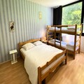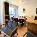Spanning an impressive 120 m², the property is thoughtfully designed to accommodate up to 12 guests, making it ideal for families or groups of friends. The living room, with its cozy sofas and armchairs, invites you to unwind after a day of adventure, while the open-plan kitchen and dining area provide the perfect setting for shared meals and laughter. With four generously sized bedrooms, including bunk beds for the little ones, and two bathrooms equipped with bathtubs, every detail has been considered to ensure your comfort. Step out onto the balcony to savor the crisp mountain air and breathtaking views.