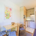 The residence features 12 thoughtfully designed apartments, including your cozy 27 m² vacation rental. Located on the first floor, the apartment is perfect for up to four guests, with a comfortable living room that includes a sofa bed for two, and a sleeping alcove with bunk beds. The open-plan kitchen is equipped with all essentials, making it easy to prepare meals after a day of adventure. Relax in the inviting living area or step out onto the balcony to soak in the crisp mountain air and stunning scenery. Modern amenities like Wi-Fi (available for an additional charge) ensure a comfortable stay, while bed linens and towels are included during the winter season.