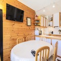 The apartment, located on the first floor, spans 55 m² and is thoughtfully designed to accommodate up to six guests. The living room features a cozy sofa bed, armchairs, a television, and a Blu-ray DVD player, making it ideal for unwinding after a day on the slopes. The open kitchen is fully equipped with modern appliances, including an oven, microwave, dishwasher, and coffee maker, ensuring you have everything you need to prepare delicious meals. The bedroom boasts a comfortable double bed, a television, and ample storage space, while the enclosed sleeping alcove features bunk beds perfect for children. A private sauna adds a touch of luxury, allowing you to relax and rejuvenate in the privacy of your own space.