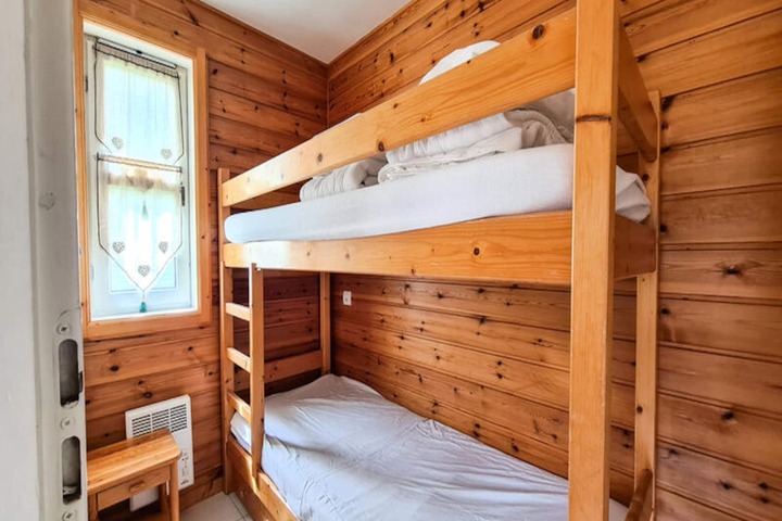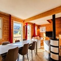 In the serene alpine setting of the Hameau de Flaine, this charming Scandinavian chalet invites you to experience the perfect mountain retreat. Surrounded by a picturesque neighborhood of chalets and a few local shops, the property offers a harmonious blend of tranquility and convenience. Whether you're here for winter's snowy adventures or summer's lush green escapes, this chalet is your gateway to unforgettable alpine moments. A nearby blue run provides easy access to the ski lifts, while a free ski bus connects you to the Flaine Forêt ski school and the heart of the slopes. \n\nDesigned to accommodate 6 to 8 guests, the 70 m² chalet is a haven of comfort and style. The warm glow of the Scandinavian wood stove sets the tone for cozy evenings in the spacious living room, complete with a flat-screen TV. The open-plan kitchen is fully equipped with modern appliances, including an electric hob, oven, microwave, freezer, and dishwasher, making it easy to prepare hearty meals after a day of adventure. The chalet features two double bedrooms, a mezzanine with a sofa bed, and a small bedroom with bunk beds, ensuring ample space for families or groups of friends. With a bathroom, a shower room, and a separate toilet, convenience is at the forefront of your stay. \n\nStep outside onto the expansive south-facing terrace and take in the breathtaking mountain views, a perfect backdrop for morning coffee or evening relaxation. The individual garage adds an extra layer of convenience, while thoughtful touches like beds made upon arrival, linens, and a welcome kit ensure a seamless and stress-free holiday. In the summer, guests staying six nights or more can enjoy the \