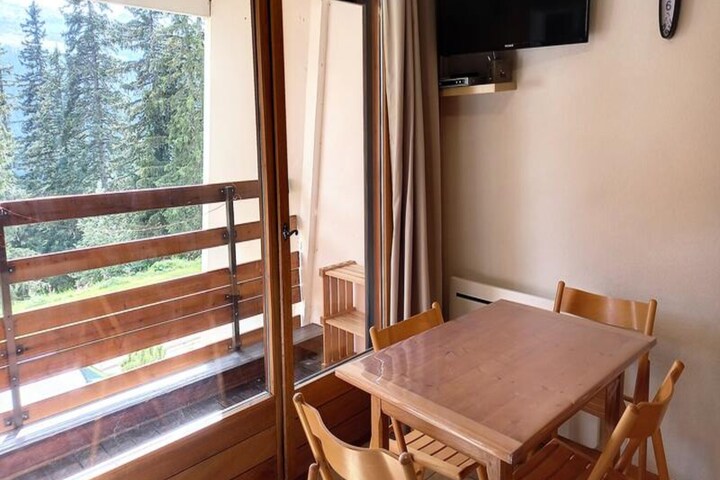 High above the serene valley of Flaine, this charming studio apartment offers a cozy retreat for those seeking both adventure and relaxation in the heart of the French Alps. With its elevated position in the Flaine Forêt district, guests are treated to breathtaking views of the surrounding ski area from the comfort of a south-facing balcony, making it the perfect spot to soak in the alpine atmosphere after a day on the slopes. The residence’s proximity to the Gérats chairlift, just 200 meters away, ensures effortless access to the expansive ski domain, while the nearby ski bus stop, shops, and restaurants provide ultimate convenience. \n\nDesigned to accommodate up to four guests, this 25 m² studio combines functionality with comfort. The layout includes a cozy cabin with a double bed, a single fold-down bed in the entrance, and a double sofa bed in the living area, making it ideal for couples, small families, or close friends. The kitchenette is fully equipped with a ceramic hob, oven, microwave, and dishwasher, allowing you to prepare hearty meals with ease. After a day of skiing or hiking, unwind in the modern shower room with a heated towel rail, or relax in front of the flat-screen TV. Additional amenities include a ski locker for your equipment and tiled flooring for easy maintenance. \n\nIn summer, the residence transforms into a hub of activity with the included “Flaine Summer Pass,” granting access to a variety of outdoor adventures for stays of six nights or more. Whether you’re skiing down pristine slopes in winter or exploring scenic trails in summer, this property offers a gateway to year-round alpine magic. With its unbeatable location, practical amenities, and stunning views, this studio is the perfect base for an unforgettable mountain getaway.