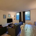 The spacious 60 m² apartment, located on the first floor with elevator access, is thoughtfully designed to accommodate up to seven guests. The layout includes two cozy bedrooms—one with a double bed and the other with bunk beds and a pull-out bed—along with a living room featuring a comfortable double sofa bed and flat-screen TV. The well-equipped kitchen boasts a ceramic hob, oven, microwave, dishwasher, large refrigerator, freezer, and both Nespresso and filter coffee machines, making it easy to prepare meals after a day of exploration. Additional amenities include a bathroom with a bathtub, a separate shower room adjoining the double bedroom, a washing machine, dryer, and a ski locker for your convenience.