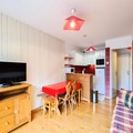 High above the serene landscapes of Flaine Forêt, this charming alpine retreat invites you to experience the beauty of the French Alps in every season. With its south-facing balcony offering breathtaking panoramic views, this cozy apartment is perfect for unwinding after a day of adventure. Whether you’re here to carve through pristine slopes or explore the lush summer trails, this residence is your gateway to unforgettable moments in the mountains. The free ski bus stops right in front, ensuring effortless access to the slopes just 500 meters away, while the nearby shopping mall is only a short walk at 150 meters. Convenience and comfort blend seamlessly in this idyllic setting. \n\nInside, the apartment is thoughtfully designed to accommodate up to six guests across two rooms and a comfort cabin. The bedroom features a plush double bed, while the sleeping area offers two single beds. The living room includes a single sofa bed and trundle bed, making it ideal for families or groups. The open-plan kitchen is equipped with modern amenities such as a ceramic hob, multifunction oven, microwave, refrigerator, and dishwasher, ensuring meal preparation is a breeze. Parquet flooring and cozy duvets add a touch of warmth and elegance, while the flat-screen TV provides entertainment after a day outdoors. Additional conveniences include a ski locker, laundry facilities, and optional Wi-Fi access. \n\nIn summer, guests staying six nights or more receive the Flaine Summer Pass, granting access to an array of exciting activities. From hiking and mountain biking to cultural events, the region transforms into a haven for outdoor enthusiasts. For winter visitors, the proximity to ski lifts and slopes makes this residence a skier’s dream. Whether you’re seeking adrenaline-pumping adventures or tranquil moments surrounded by alpine beauty, this property offers it all. Flaine Forêt is waiting to welcome you to a world of relaxation and exploration.