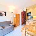 In the serene Flaine Forêt district, this charming studio offers a delightful alpine escape just 150 meters from the slopes and ski school meeting points. Perfectly situated for both winter sports enthusiasts and summer adventurers, the residence combines convenience with comfort, ensuring an unforgettable stay in the heart of the French Alps. From its south-facing balcony on the third floor, soak in the crisp mountain air and enjoy the tranquil views that make Flaine a beloved destination year-round. \n\nThe renovated 25 m² studio is thoughtfully equipped for up to four guests, making it ideal for couples or small families. The entrance features a set of bunk beds, while the living room offers a cozy double sofa bed. Modern amenities include a flat-screen TV, DVD player, and a fully equipped kitchenette with electric burners, a dishwasher, oven, microwave, and Nespresso coffee maker. The bathroom includes a bathtub, and there’s a separate toilet for added convenience. Ski lockers are provided for easy storage, and the property maintains a smoke-free and pet-free environment, ensuring a clean and comfortable stay. Please note that bed linen and towels are not included, and the top bunk is not suitable for children under six years old.\n\nBeyond the residence, Flaine offers a wealth of activities and attractions. In winter, guests can explore the expansive Grand Massif ski area, renowned for its pristine slopes and breathtaking scenery. In summer, the included Flaine Summer Pass unlocks numerous activities, from hiking and mountain biking to cultural events and outdoor adventures. Nearby shops and restaurants ensure all essentials are within easy reach, while the charm of the Flaine Forêt district provides a peaceful retreat after a day of exploration.\n\nWhether you’re seeking thrilling days on the slopes or tranquil evenings under the alpine sky, this studio is your gateway to the wonders of Flaine. Create lasting memories in a destination that perfectly blends natural beauty, outdoor excitement, and modern comfort.