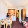 The studio, thoughtfully designed for up to four guests, features a welcoming living room, a well-equipped kitchen, a comfortable sleeping alcove, and a modern bathroom. Its compact yet functional layout ensures a comfortable stay, while the Maeva Home Comfort Label guarantees excellent value for money. Essential amenities such as a cleaning kit are included, and additional services like bed linens, towels, and end-of-stay cleaning can be arranged for your convenience. Whether you’re preparing a hearty breakfast before hitting the slopes or unwinding with a warm drink after a day of adventure, this space feels like a home away from home.
