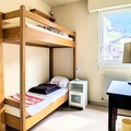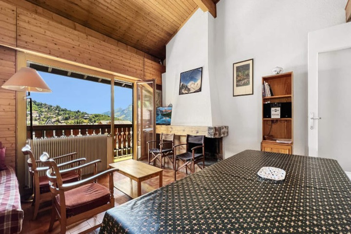 On the 4th floor of the residence with elevator, this 68 m² apartment offers five separate sleeping areas to accommodate 8 people. It includes three separate bedrooms (bedrooms 1 and 2: bunk beds, bedroom 3: a double bed), a mezzanine (one single bed), a living room (one single sofa bed), a kitchenette, a bathroom, a separate toilet, and a shower room upstairs. The south-facing balcony offers a lovely view of the village and the Timalets ski slope.