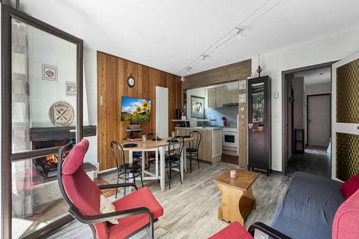 Beautiful 3-room apartment on the ground floor of the "Muguet" residence, 400m from the village center. With 56m² of living space, it boasts excellent Wi-Fi, perfect for working from home! This apartment offers three sleeping areas, accommodating 6-8 people: one bedroom with two sets of bunk beds, a second bedroom with a single bed (120cm), and a living room with a sofa bed. South-facing balcony with a lovely view.