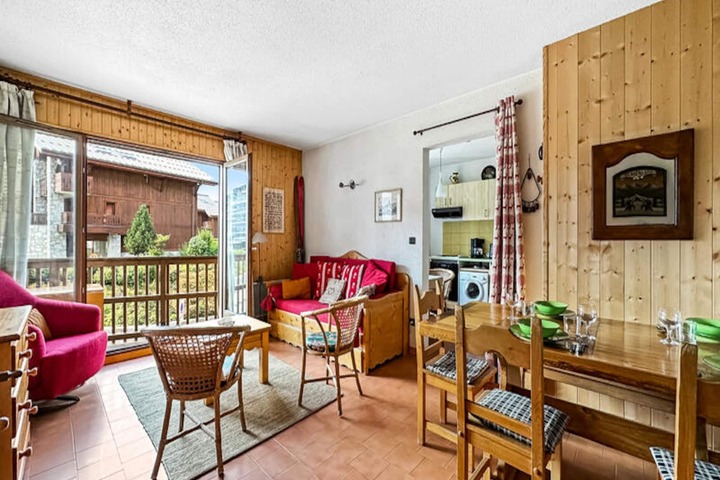 In the heart of the charming village center, this delightful duplex apartment offers a warm and inviting retreat for families and groups seeking an authentic alpine getaway. With its west-facing balcony, you can bask in the afternoon sun while enjoying picturesque views of the surrounding mountain scenery. The apartment is perfectly situated to provide easy access to the village’s vibrant amenities, including shops, restaurants, and a convenient ski bus stop just 100 meters away, ensuring seamless connections to the slopes and winter adventures. \n\nSpanning 67 m², this thoughtfully designed apartment accommodates up to eight guests across four separate sleeping areas. Upstairs, you’ll find three cozy bedrooms, including one with a double bed, another with two single beds, and a third with bunk beds, ideal for children. The living room features two pull-out beds, making it a flexible space for larger groups. A fully equipped kitchen invites you to prepare hearty meals after a day in the snow, while the bathroom with a separate toilet adds to the convenience. The property also includes a covered parking space directly under the building, ensuring hassle-free arrivals and departures. \n\nBeyond the apartment, the village center offers a lively atmosphere with everything you need within walking distance. Whether you’re exploring local shops, sampling regional cuisine at nearby restaurants, or hopping on the ski bus to access the slopes, the location is unbeatable for both relaxation and adventure. In summer, the area transforms into a haven for hikers and cyclists, with trails leading to breathtaking alpine vistas. \n\nThis duplex apartment combines comfort, practicality, and an unbeatable location, making it the perfect base for creating unforgettable memories in the French Alps, no matter the season.