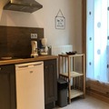 Located on the first floor (five steps from the ground floor), this 25.85 m² apartment offers two sleeping areas to accommodate four people, including a separate sleeping alcove, a living/dining/kitchenette area, a bathroom with a walk-in shower, and a separate toilet.