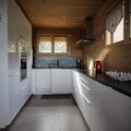Spanning 180 m², the chalet comfortably accommodates up to 10 guests across 5 well-appointed bedrooms, each featuring a flat-screen TV. The open-plan living and dining area, complete with a fully equipped kitchen, is designed for cozy evenings spent sharing meals and stories. Upstairs, three double bedrooms (two with private balconies) provide restful spaces, while the lower level offers a double bedroom and a twin room, ideal for families or groups of friends. Modern bathrooms, including a shower room with a washing machine, ensure convenience for all guests.