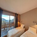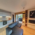 Spanning over 90 m², this tastefully designed apartment comfortably accommodates up to eight guests. The spacious living area, adorned with designer furnishings, opens onto a terrace perfect for après-ski relaxation. The master bedroom features a plush double bed, an en-suite bathroom, and direct terrace access, while the second bedroom offers two single beds, and the third boasts four single beds in a cozy bunk bed arrangement. A modern shower room and separate toilet ensure convenience for all guests. Additional amenities include a fully equipped kitchen, TV, Wi-Fi, and a washing machine, ensuring a comfortable and stress-free stay. Beds are made upon arrival, and towels are provided, adding a touch of luxury to your experience.