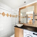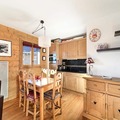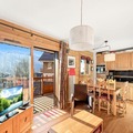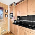 The apartment features three spacious bedrooms, including a master suite with a queen-size bed and ensuite bathroom, and two additional bedrooms with cozy single beds. A second shower room, a separate WC, and a fully equipped kitchen that opens onto a welcoming living area ensure a comfortable and convenient stay. Modern amenities such as a multi-function oven, dishwasher, washing machine, and even a raclette and fondue set add a touch of homey luxury. After a day on the slopes, store your gear in the ski locker equipped with a boot warmer and unwind in the warmth of your alpine sanctuary.