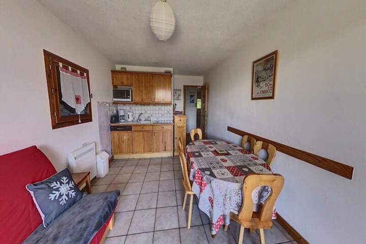 This charming apartment can accommodate up to 6 guests, featuring two comfortable bedrooms: one with bunk beds and the other with twin beds. The living room includes a cozy CLIC CLAC sofa bed, ideal for additional guests. The apartment is pet-free and non-smoking, ensuring a clean and serene environment for all. With a prime location near the ski lifts and shops, it’s perfect for those seeking convenience and comfort.
