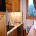 The apartment is equipped with a kitchenette that includes 4 electric hotplates, a refrigerator, oven, microwave, dishwasher, and washing machine. The bathroom features a shower, sink, and WC. Additional amenities include a closed garage, ski locker, and garden space. Optional services, such as Wi-Fi box rental, linen rental, and end-of-stay cleaning, are available for an extra charge.