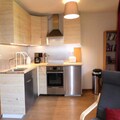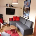 This cozy 2-room apartment in Les Houches offers a comfortable stay for up to 4 people. The apartment features a bedroom with a double bed and a living room with a sofa bed, television, and dining area. A well-equipped kitchenette with 4 ceramic hobs, a refrigerator, oven, and dishwasher ensures you can prepare meals easily. The bathroom includes a bathtub, sink, and washing machine, and there is a separate WC. The apartment is located on the -1 floor with a Western exposure.