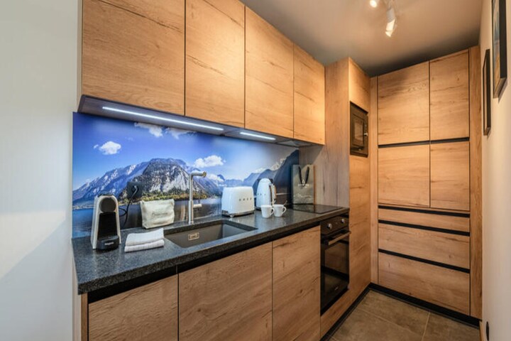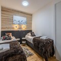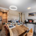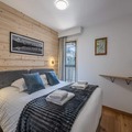 Inside, the 60m² apartment is thoughtfully designed to accommodate up to four guests. The open-plan living and dining area features a cozy seating space with a TV, leading to a spacious terrace where you can soak in the crisp alpine air. The fully equipped kitchen, complete with an induction hob, refrigerator, dishwasher, oven, and microwave, makes meal preparation a breeze. The two bedrooms, including a master with an en-suite shower room and a cabin-style room, both offer flexible bedding configurations to suit your needs. Additional comforts include a bathroom with a bathtub and washer-dryer, a separate toilet, and convenient underground parking.