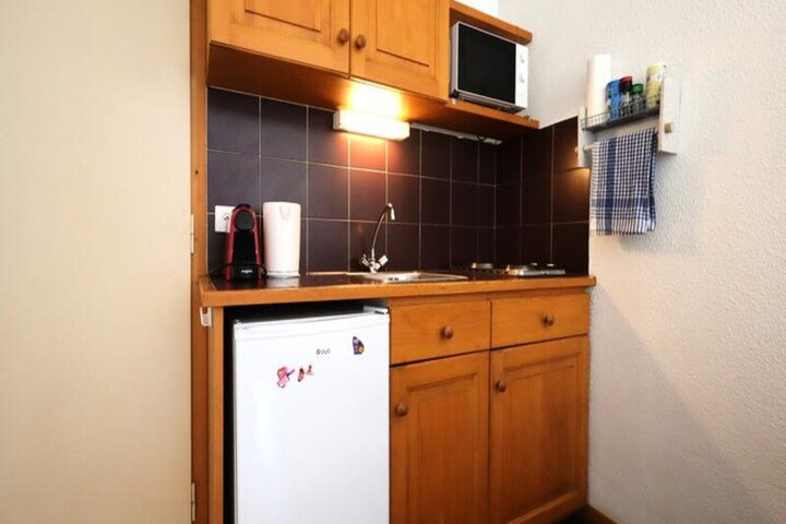Where the majestic peaks of the French Alps meet serene southern exposure, this charming studio cabin in Les Houches invites you to experience mountain living at its finest. Just 120 meters from the Prarion cable cars, your alpine adventures begin moments from your doorstep. Whether you're seeking thrilling ski runs or tranquil hikes, this location offers the perfect blend of accessibility and natural beauty, with stunning views and crisp mountain air to awaken your senses each morning. \n\nDesigned for families or small groups, the 27m² studio comfortably accommodates up to four guests. The living room features a cozy sofa bed and dining area, while the kitchenette is equipped with essential appliances including electric burners, a refrigerator, and a microwave. A separate sleeping area with bunk beds ensures restful nights, and the bathroom with a bathtub provides a relaxing retreat after a day of outdoor activities. Additional conveniences such as an enclosed garage and outdoor parking make your stay hassle-free, while optional services like Wi-Fi and linen rentals add flexibility to your holiday plans. \n\nLes Houches offers a delightful mix of alpine charm and modern amenities. The village center, located just 1.5 km away, boasts restaurants, bars, a bakery, ski shops, and a Carrefour Contact for all your needs. In winter, enjoy direct access to pristine slopes, while summer brings opportunities for hiking, cycling, and exploring the breathtaking landscapes of the Chamonix Valley. \n\nWhether you're here to ski, relax, or simply immerse yourself in the beauty of the Alps, this studio cabin is your gateway to unforgettable mountain memories.