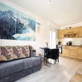 Where the majestic peaks of the French Alps meet the charm of a mountain village, this beautifully renovated studio cabin in Les Houches offers a serene escape for up to four guests. With its double balcony facing east and south, you can wake up to the soft glow of sunrise and savor sweeping views of the alpine landscape, setting the tone for an unforgettable day ahead. Whether you're here for skiing adventures or summer hikes, this cozy retreat is perfectly positioned just 300 meters from the Bellevue cable car and 450 meters from the village center, where restaurants, bakeries, and ski shops await. \n\nInside, the apartment combines modern convenience with warm, inviting decor. The living room features a comfortable sofa bed, television, dining area, and access to the balcony, creating a space to relax after a day of exploring. The open-plan kitchen is fully equipped with a refrigerator, freezer, oven, electric hob, and microwave, making it easy to prepare hearty meals. A separate sleeping area with a double bed ensures restful nights, while the shower room with WC adds practicality to your stay. Additional amenities include a washing machine, Wi-Fi, parking, and a ski locker, ensuring a seamless holiday experience. \n\nLes Houches offers more than just skiing; its proximity to Chamonix and Mont Blanc opens up a world of outdoor activities, from paragliding to scenic trails. After an active day, stroll through the village to enjoy local delicacies or unwind in the comfort of your apartment. With optional services like linen rental and childcare equipment, this property caters to families and friends seeking both adventure and relaxation. Make memories in the heart of the Alps, where every moment feels like a postcard come to life.