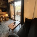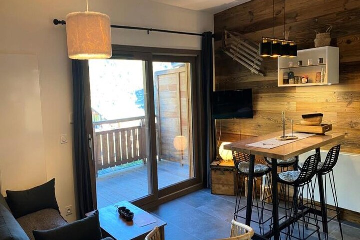 This lovely 2-room cabin apartment, located on the 4th floor of the nice residence, offers 43m² of comfortable living space for up to 4 people. With a fantastic view over the Abondance Valley, the apartment is just 200 meters from the village center, providing easy access to shops and amenities. The apartment features a cozy cabin area with a bunk bed (90x190) and storage, as well as a separate bedroom with a double bed (140x190) and additional storage. The fully equipped kitchen includes a traditional oven, microwave, fridge with freezer, dishwasher, Nespresso coffee maker, and more, while the living room leads out to a spacious terrace with stunning valley views and outdoor furniture.