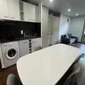 The apartment is equipped with a functional kitchen, which includes essential appliances such as a dishwasher, washing machine, and modern amenities for preparing meals during your stay. The open-plan kitchen flows into the living room, creating a social space for guests to relax after a day of activities. The apartment also offers heating to ensure comfort during colder months. Ski lockers are available for storing equipment, and covered parking provides convenience for those with their own vehicles. The property is thoughtfully designed to cater to the needs of guests, providing both practical amenities and a relaxing atmosphere.