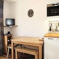 This cozy apartment, located in Residence 6, offers comfortable accommodation for up to 4 people. Situated just 300 meters from the Barbossine chairlift, it provides convenient access to skiing and other mountain activities. The apartment features a 27m² layout with a mountain corner with two bunk beds, a bedroom with a double bed (140 x 200 cm), a living room, a fully equipped kitchen, a bathroom, and a separate toilet. The south-west facing balcony allows guests to enjoy stunning views of the surrounding area.