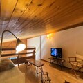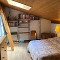 The apartment features a fully equipped kitchen with a stove, refrigerator, and essential kitchenware for preparing meals. The bathroom and separate toilet provide functional spaces for guests, while the steep staircase leading to the mezzanine adds character to the duplex layout. Heating is provided to ensure a comfortable stay throughout the year. For added convenience, the apartment includes duvets and a ski locker, making it a practical choice for both winter and summer stays. However, guests should note that pets are not permitted in the apartment, and there is a deposit required upon check-in.