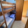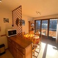 This spacious 45m² apartment, located on the 2nd floor of a residence built in 1992, comfortably accommodates up to 6 guests. Situated in the Petit Châtel area, just opposite the Barbossine chairlift, the apartment offers easy access to skiing and the village center, which is 1300 meters away. A free shuttle stop is nearby, providing convenient transportation. The apartment features two bedrooms: one with a 160 cm double bed and TV, and the other with two bunk beds. The living room includes two 80 cm single beds, perfect for extra guests. A south/east-facing 17m² balcony offers stunning views of the surrounding landscape.