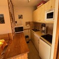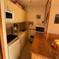 The fully equipped kitchen includes a hob, microwave, oven, filter coffee maker, dishwasher, raclette machine, and fondue set for après-ski meals. Additional amenities include a television, washing machine, and duvets for comfort. The apartment also provides a garage (No. 74) and an equipped cellar for storage. Pets are not allowed.