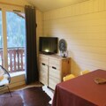This cozy 33 m² apartment, located on the 3rd floor of building B in a residence built in 1994, is ideal for up to 4 guests. The apartment includes a mountain corner with 2 bunk beds, a separate bedroom with a double bed, a living room with a convertible sofa, and a south-facing balcony offering beautiful views. It is equipped with essential amenities, including a TV and duvets. The apartment also provides a garage, ski locker, and ski rack for added convenience. Pets are not allowed, and a deposit is required.