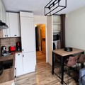 This charming apartment, located in Residence B, offers a cozy and well-equipped retreat for up to 4 people. Situated on the 1st floor of a residence built in 1994, the apartment is just 300 meters from the Linga cable car and 1900 meters from the village center, with convenient access to free shuttles. The interior features a mountain corner with two folding beds, a bedroom with a double bed, and a comfortable sofa bed in the living room. The apartment also includes a bathroom, a separate toilet, and a spacious living area leading out to a large south-facing terrace with garden furniture, perfect for enjoying the scenic views.