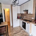 The fully equipped kitchen provides everything needed for meal preparation, including an induction hob, oven, microwave, coffee makers, raclette grill, and dishwasher. Additional amenities include a washing machine, vacuum cleaner, TV, and internet. The apartment is also furnished with duvets and pillows for your comfort. Ski enthusiasts will appreciate the on-site ski room, and there is shared parking available.