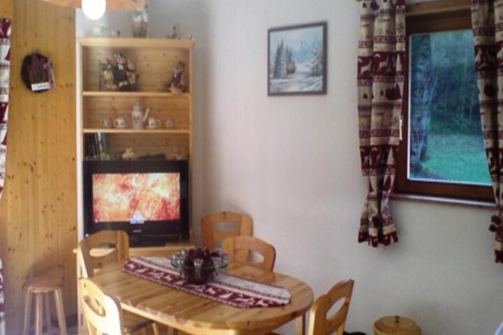Property, along with its well-planned layout, comfortably accommodates up to 6 guests in a 32 m² space. The apartment features two bedrooms—one with a double bed and the other with two bunk beds—along with a convertible sofa in the living room for added flexibility. A south-east facing balcony offers scenic mountain views. The apartment is non-smoking, and pets are not permitted. Guests can also access the Summer Multipass at an additional cost. For extra comfort, a TV and a washing machine are provided, and there are convenient services such as outdoor parking, a garage, and a cellar for storage.