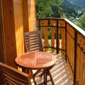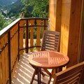 The kitchen is fitted with a hob, oven, microwave, dishwasher, kettle, filter coffee maker, and even a raclette machine for cozy evenings. Guests can enjoy a 7 m² balcony facing south-west, offering a great spot to relax and take in the surroundings. For added convenience, a covered parking space and a cellar for ski storage are included.