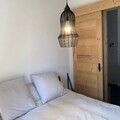 Inside, the apartment features an entrance hall with a cupboard, a fully equipped kitchen that opens into the living room, and a large terrace with outdoor seating. The three bedrooms each come with a double bed, including a master suite with its own open bathroom, complete with a hairdryer and straightener. A hallway with additional storage, a separate WC, and a second bathroom round out the space. The kitchen is equipped with a hob, oven, capsule coffee maker, kettle, and raclette machine, perfect for cozy meals after a day of skiing or hiking.For convenience, the residence includes outdoor parking, a garage, and a ski room with a boot dryer, ideal for preparing for the next adventure. The rental also comes with included linen, end-of-stay cleaning, and the Multipass, which offers discounted access to a variety of local activities.