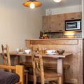 "Le Cheval Blanc Privilège", 2-room apartment 30 to 33 m2. Rustic furnishings: living/sleeping room with 1 sofabed, 1 pull-out bed, dining table and satellite TV (flat screen). Exit to the balcony. 1 room with 2 beds. Alcove with 1 x 2 bunk beds. Kitchenette (2 hot plates, mini-oven, dishwasher, kettle, microwave, electric coffee machine). Bathroom, sep. WC. Electric heating. Small balcony. Partial view of the ski run. Facilities: safe, children's high chair, baby cot. Internet (WiFi, free). Please note: smoke alarm. Instead of an enclosed bedroom, some sleeping areas are located in an open-plan area (gallery, alcove, etc.).